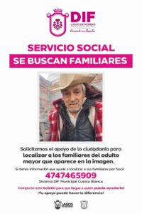 SE BUSCA A FAMILIARES O PERSONAS QUE LO CONOZCAN El DIF Cuesta Blanca solicita el apoyo de la ciudadanía para