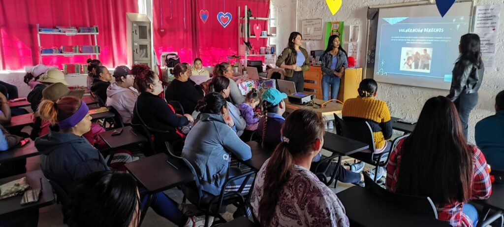 📢✨ Nuestro equipo de #UAVIFAM sigue trabajando en la prevención y atención de la violencia. En esta ocasión, visitamos la escuela Ángela Peralta en la comunidad Las Crucitas, donde brindamos una plática a madres y padres de familia sobre Violencia contra Niñas, Niños y Adolescentes. 💜👧👦